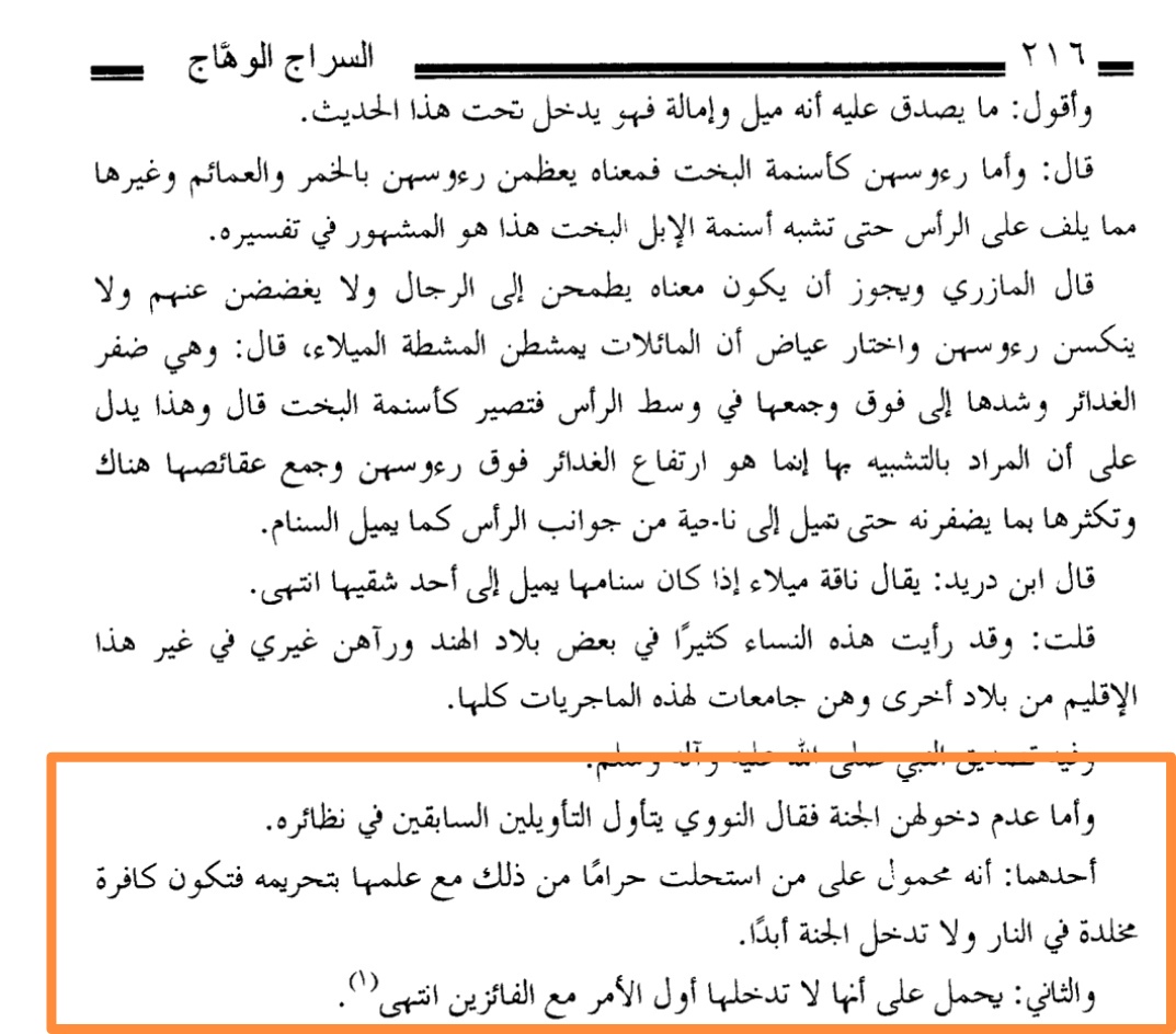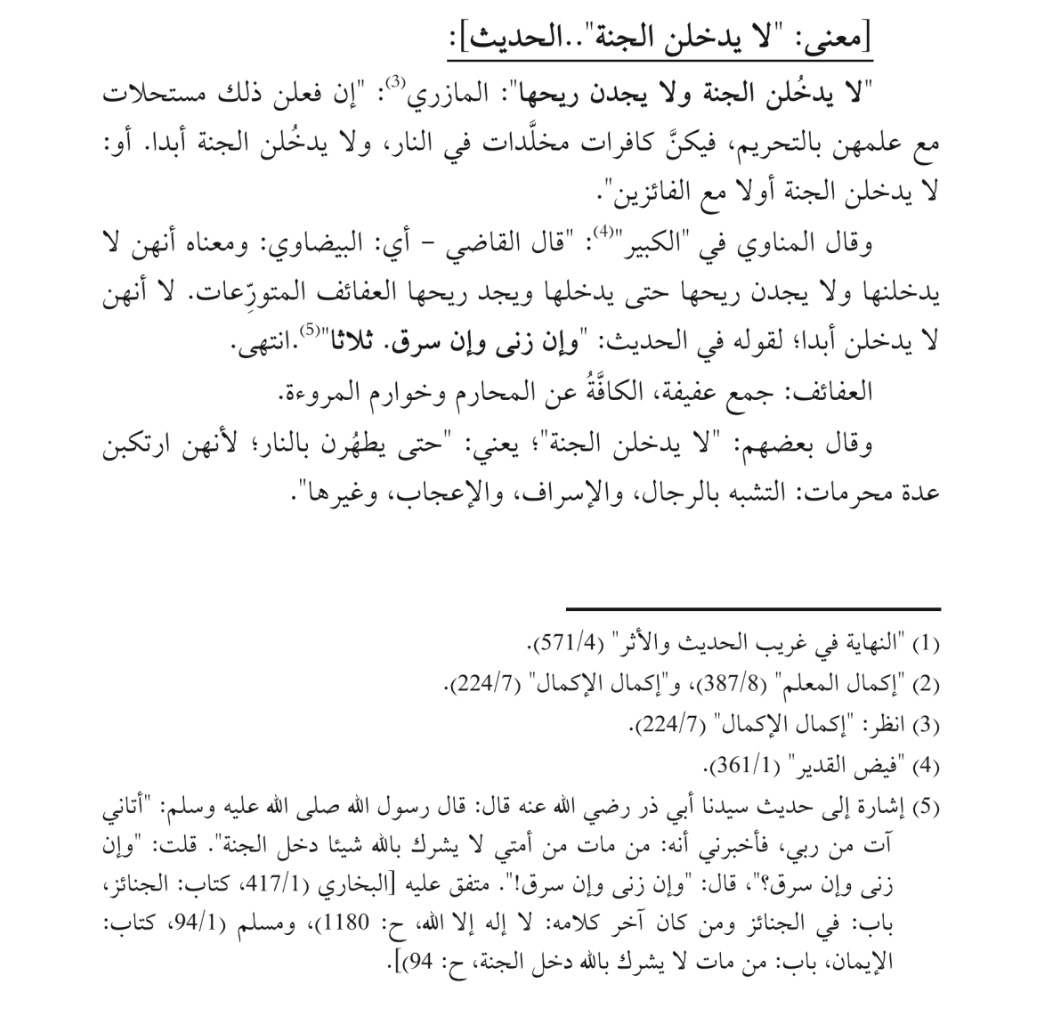 المازري : إن فعلن ذلك مستحلات مع علمهن بالتحريم أو لا يدخلن الجنة أولاً مع الفائزين