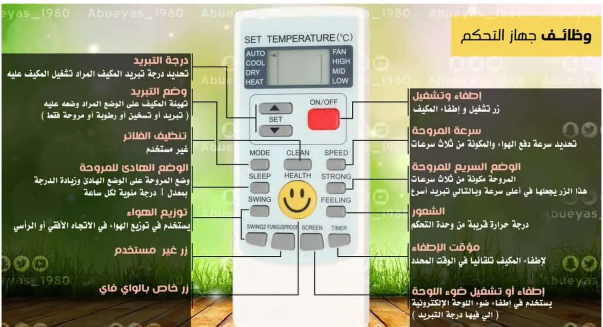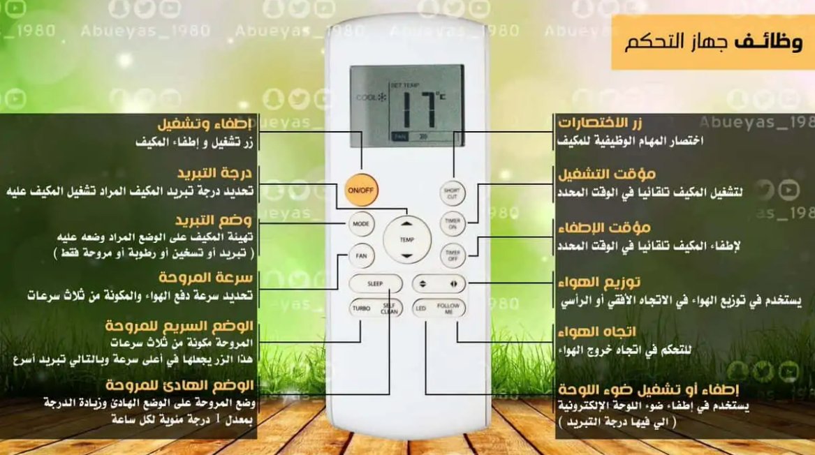 معاني الرموز في ريموت المكيف بإختصار لجميع الشركات