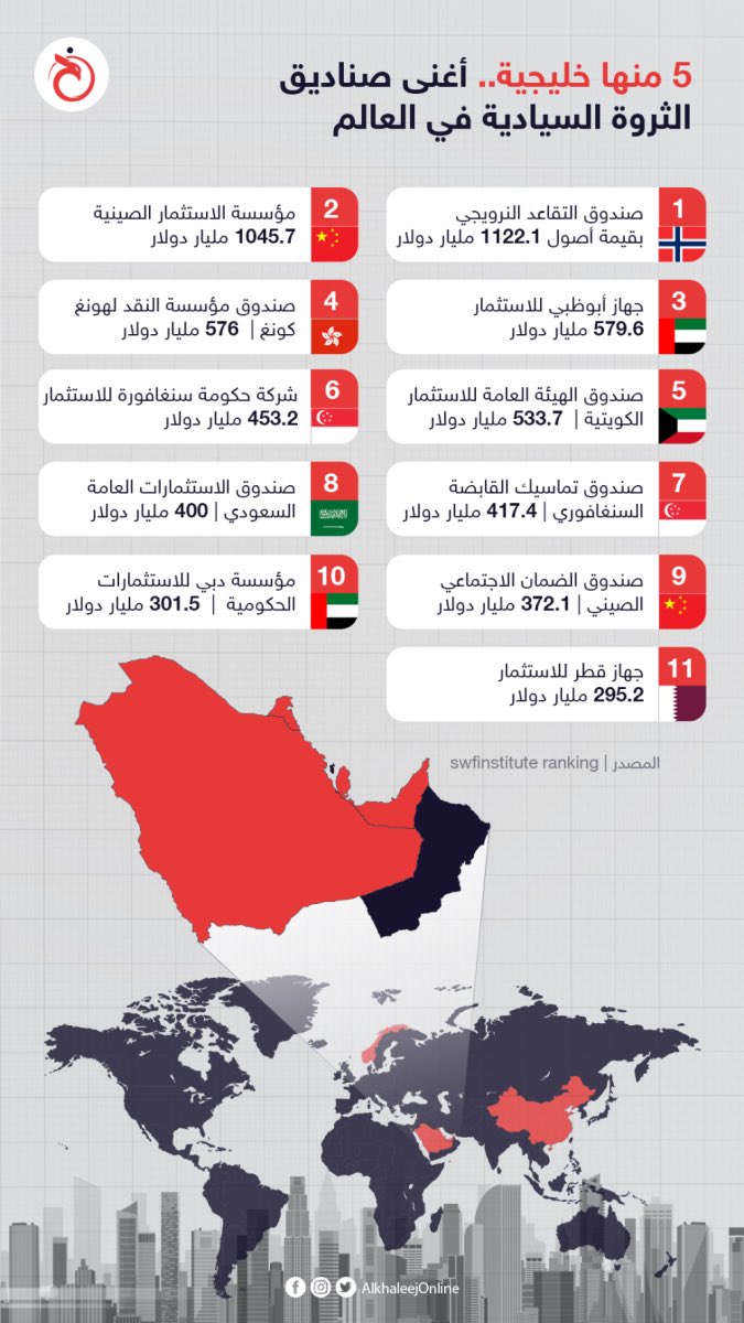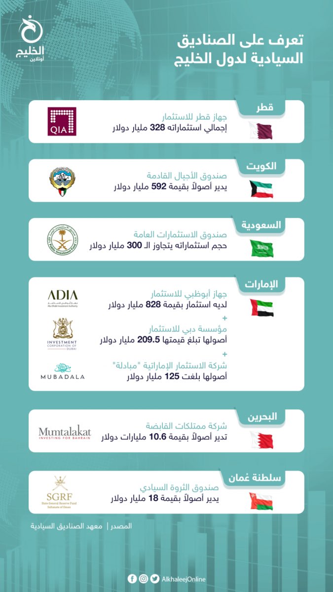 🔴 وكانت أصول الصندوق السيادي السعودي تقدَّر بنحو 480 مليار دولار، وفق آخر بيانات أصدرها معهد صناديق الثروة السيادية، في حين تقترب القيمة السوقية لشركة "أرامكو" من تريليوني دولار ويسعى صندوق الاستثمارات السعودي إلى مضاعفة أصوله إلى أكثر من 1.1 تريليون دولار بحلول عام 2025 9️⃣