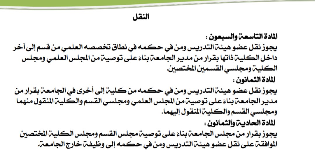- اجراء مقابلة شخصية للشخص المنقول من خارج الجامعة من لجنة برئاسة عميد الكلية و رئيس القسم وعميد الدراسات العليا.