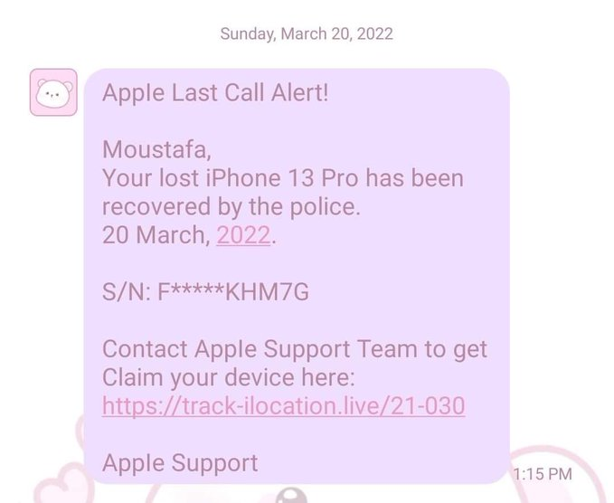 زي الشطور لما تليفونك بيتسرق بتخش علي Find My Phone و تحط التليفون في Lost Mode و تسيب رقم تليفون للتواصل (علي اساس مثلا انك هتتفاوض مع الحرامي). اللي بيحصل ان الحرامي بياخد الرقم ده و يلعب عليك لعبة ظريفة