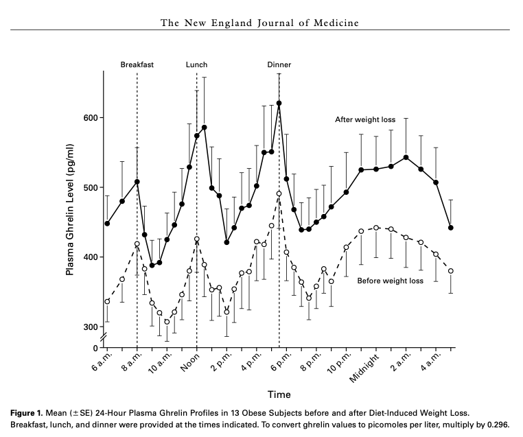 واحدة من اهم هذه الهرمونات هو هرمون الجرلين (يطلق عليه هرمون الجوع):