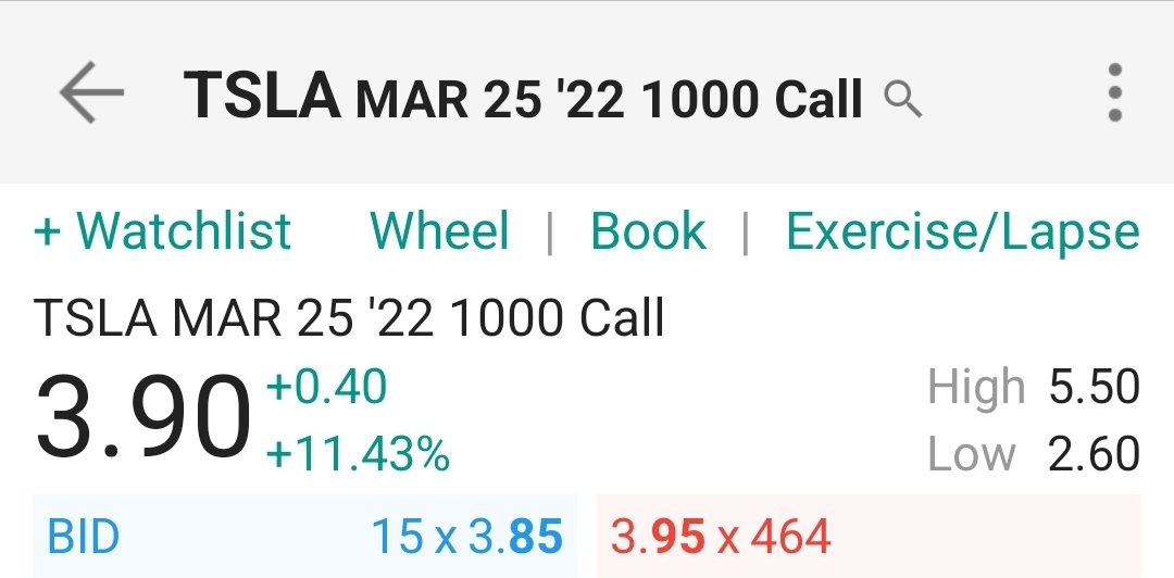 نزل العقد ل 3 .. ورجع طلع ل 5.5 .. اللي دخل معي من جديد وضارب ع العقد حقق 80% مرتين او ثلاث 😉👌🏽🤩 .. عشان كذا انا أحب عقود تسلا .. الtrading vol. عاااااالي #tsla #OptionsTrading