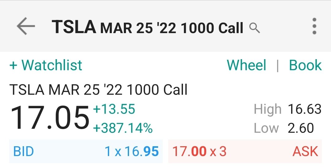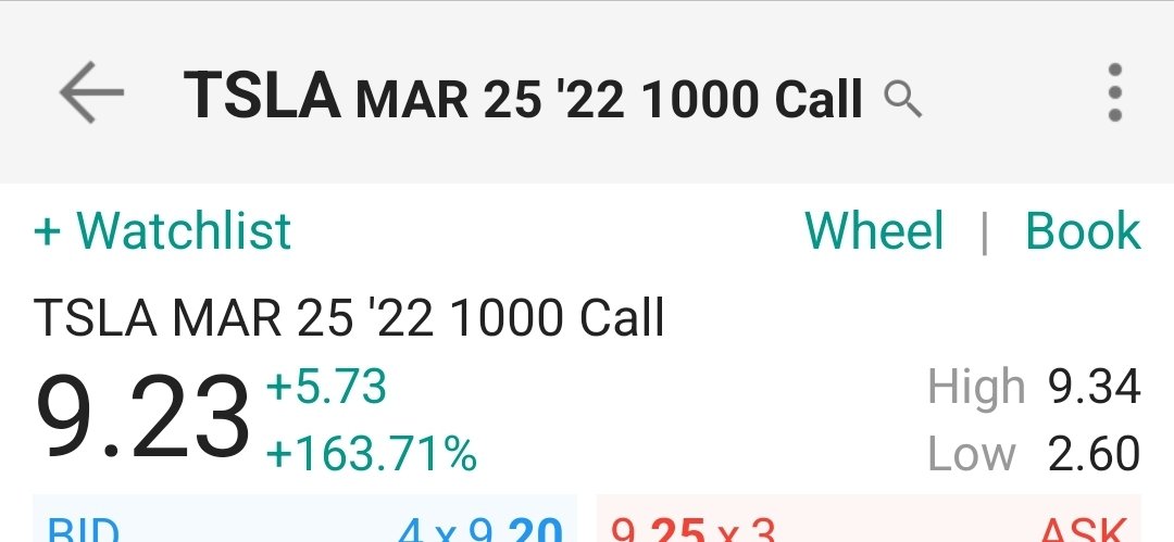 #TSLA تسلا من جديد عقد كول1000 .. لازال فيه ايجابيه وكميات تداوله عالية .. سعره الان 3.6 .. نسحب معاه على الافتتاح .. ارتد السهم امس مع الافتتاح من القناة الصاعدة