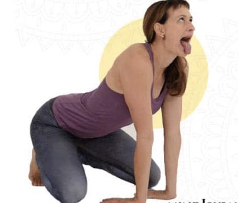 1. اجلس في وضعية متقاطعة الأرجل أو اجلس على كعبك. 2. استنشق بعمق من خلال الأنف وزفر من خلال الفم عن طريق فتحه على نطاق واسع وتمديد لسانك للخارج.