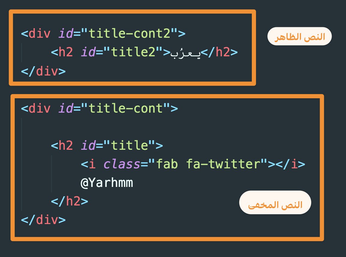 أخيرا بالنسبة للنصوص لدي نصين: الأول هو الذي يظهر في البداية و هو الاسم (يعرب) و الثاني هو حساب تويتر @yarhmm لكنه يكون مخفيا عن طريق جعل خاصية ال opacity تساوي 0 في البداية، و عند ال hover على الخماسي أقوم بعكس العملية بين النصين
