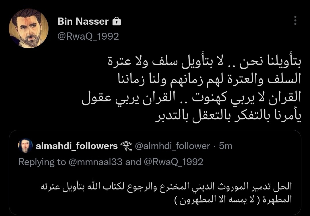 فأنت بتغريدتك أردت مصيبة، تريدون أخذ معنى منه بغير علم، أو الاستدلال ببعض آية بعيداً عن الآية كاملة، وبعيداً عن فهم السياق الذي جاءت فيه الآيات، وبعيداً عن توضيحات السنة النبوية، وبعيداً عن قواعد اللغة العربية، وبعيداً عن روح الشريعة وطبيعتها، فأصبح الكل يريد التأويل حسب أهواءه