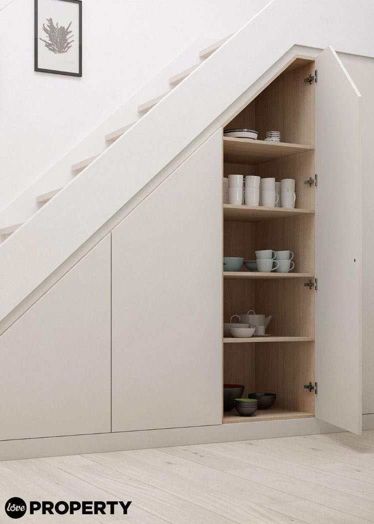 لكن من اهم النقاط التي تحدد لنا اختيار الحل المناسب لاستغلال منطقة اسفل الدرج هو ( تمصيم الدرج + ارتفاع الدرج + مكان الدرج في المنزل )#ديكور