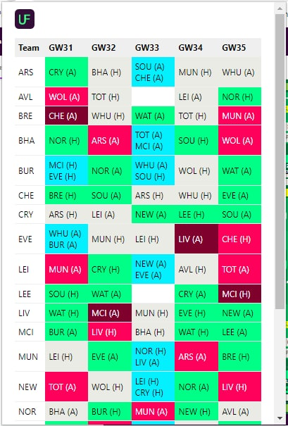 FPL upcoming fixtures