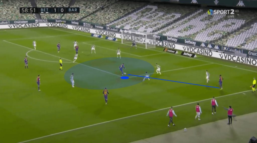 عندما قام برشلونة بتوزيع الكرة ، مما أجبر الخصم على تحديث شكله الدفاعي باستمرار على طول المحور X و Y ، سحب الأرجنتيني نفسه من تدفق اللعب. بدلاً من البحث عن جيوب من المساحة مع الحركة المستمرة.