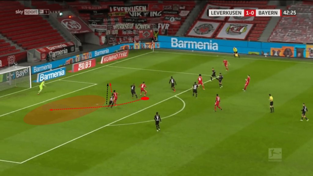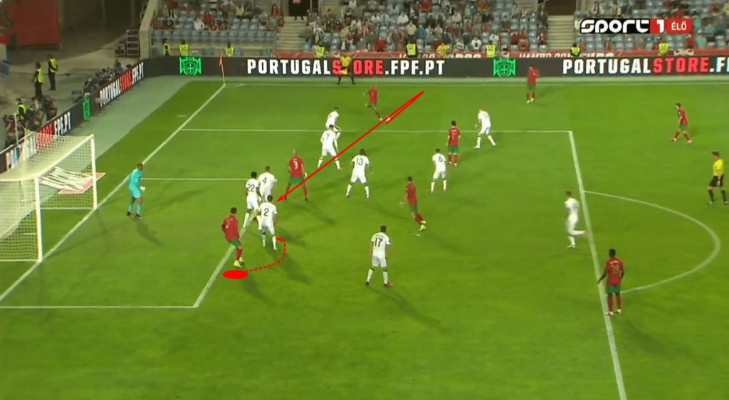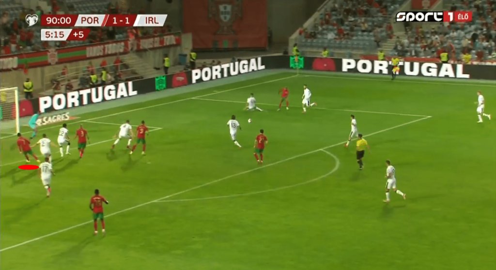 تمركزه في البداية هو أهم جزء في هذا التسلسل ، لكن حركاته داخل وخارج الكرة تبرز وجوده الديناميكي على أرض الملعب. أولاً ، نرى قدرته على المراوغة. ثانيًا ، الذكاء الذي يعلق المدافع الثاني بينما لا يزال يهاجم الأول ، والثالث ، يهيئ التمريرة البينية إلى دراكسلر.