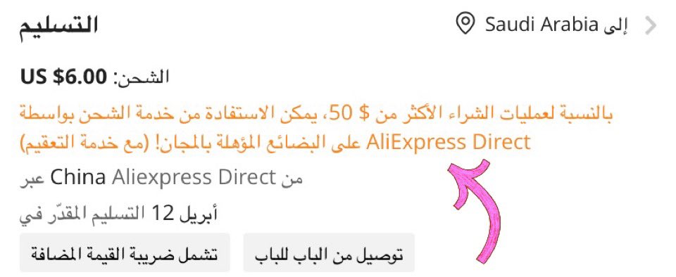 الشحن مجاني مع خدمة علي دايركت اذا تعدت 50$