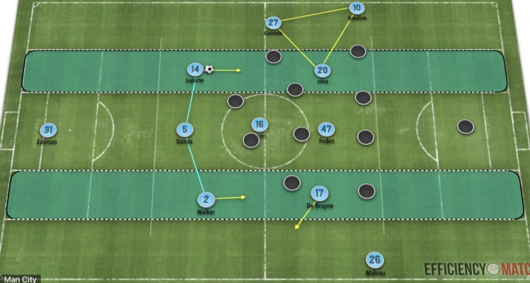 عند مشاهدة مانشستر سيتي أياً كان من يلعب في دور ST داخل فريقهم ، نرى قدرة هذا اللاعب على النزول بالقرب من المحور الفردي لرودري والوصول إليه من خلال الرجل الثالث.