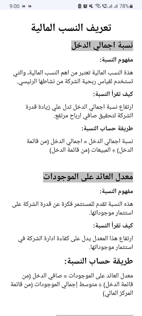 سوف يتم استخدام ١٢ نسبة مالية للتحليل، وتعريف هذة النسب في الاسفل 👇