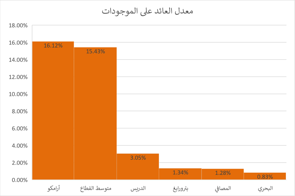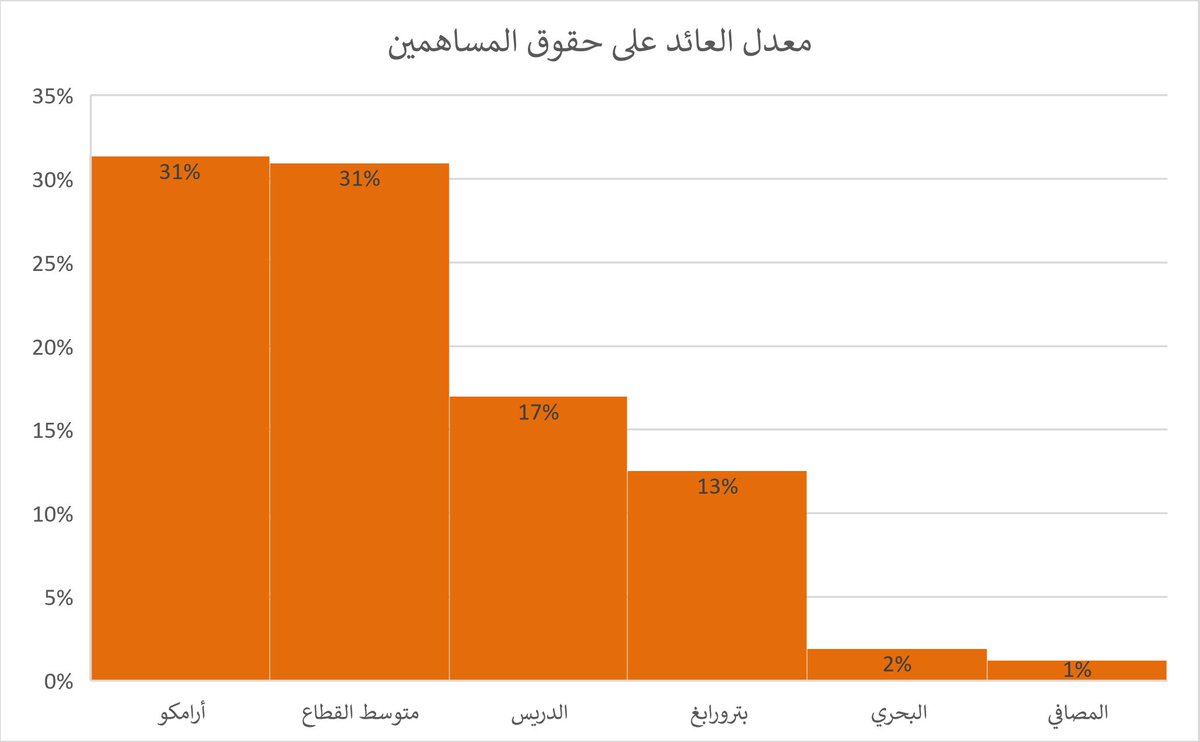 في معدل العائد على حقوق المساهمين نلاحظ #ارامكو_السعودية اولا ثم #الدريس ثم #بترورابغ