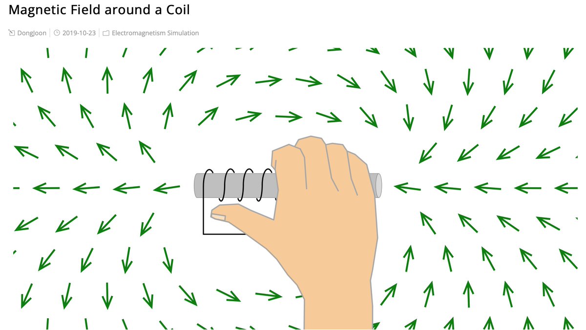 المجال المغناطيسي حول سلك ، و استخدام قاعدة اليد اليمنى الاولى