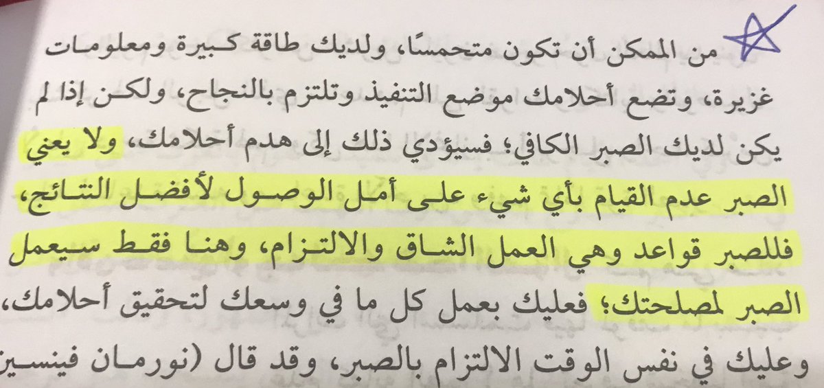 "ولا يعني الصبر عدم القيام بأي شيء على أمل الوصول لأفضل النتائج، فللصبر قواعد وهي العمل الشاق والالتزام، وهنا فقط سيعمل الصبر لمصلحتك."