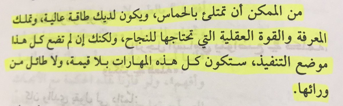 "من الممكن أن تمتلئ بالحماس، ويكون لديك طاقة عالية، وتملك المعرفة والقوة العقلية التي تحتاجها للنجاح، ولكنك إن لم تضع كل هذا موضع التنفيذ، ستكون كل هذه المهارات بلا قيمة، ولا طائل من ورائها."