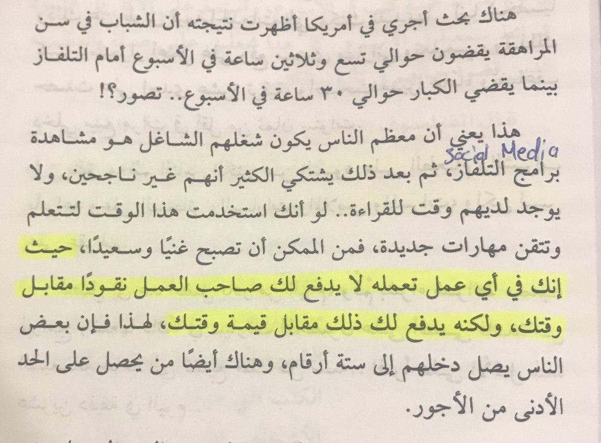 "حيث أنك في أي عمل تعمله لا يدفع لك صاحب العمل نقوداً مقابل وقتك، ولكنه يدفع لك ذلك مقابل قيمة وقتك."