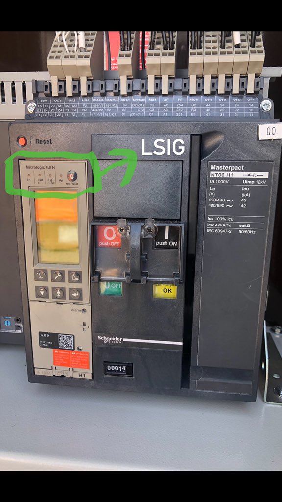 G يقصد Ground fault او اختبار التسرب الارضي اي عند وجود اي خطأ ارضي و عند تيار محدد وزمن محدد يجب ان يفصل القاطع وغالبا قيمة التيار المحدد للGround fault يكون 20% من قيمة rated current.