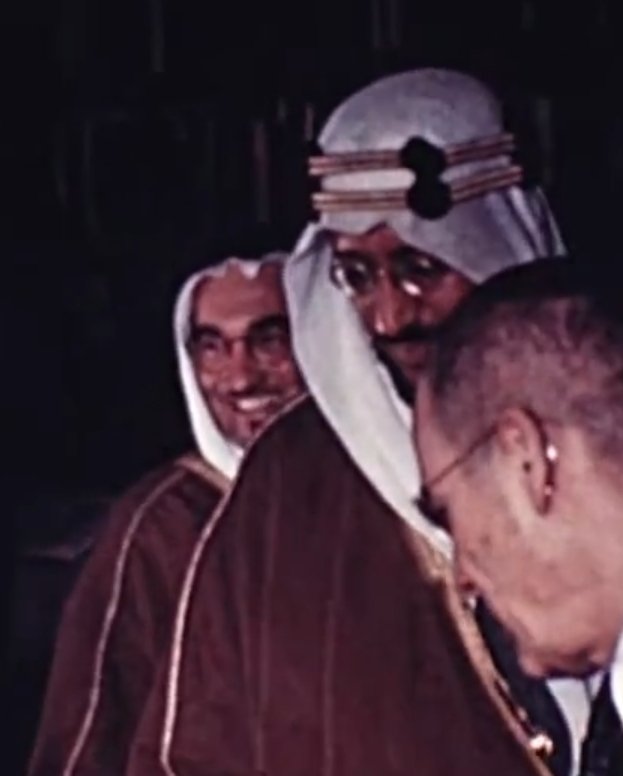 @yousefmulla1 @kingsaud ظهر في الفيديو عدد من الشخصيات التي رافقت الملك سعود في زيارته، منهم: