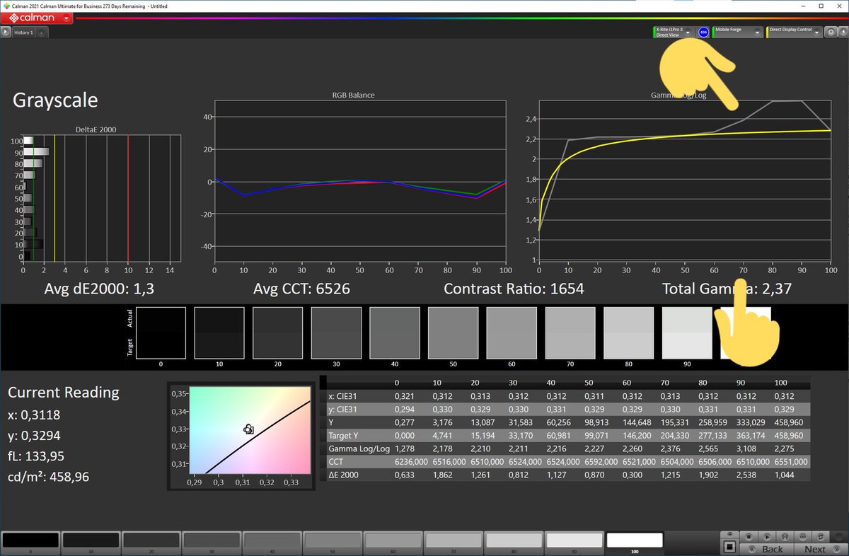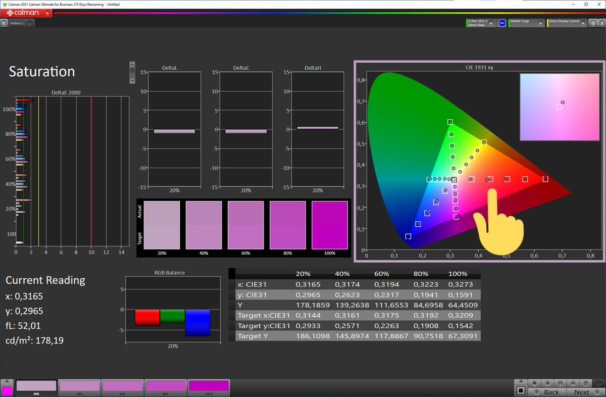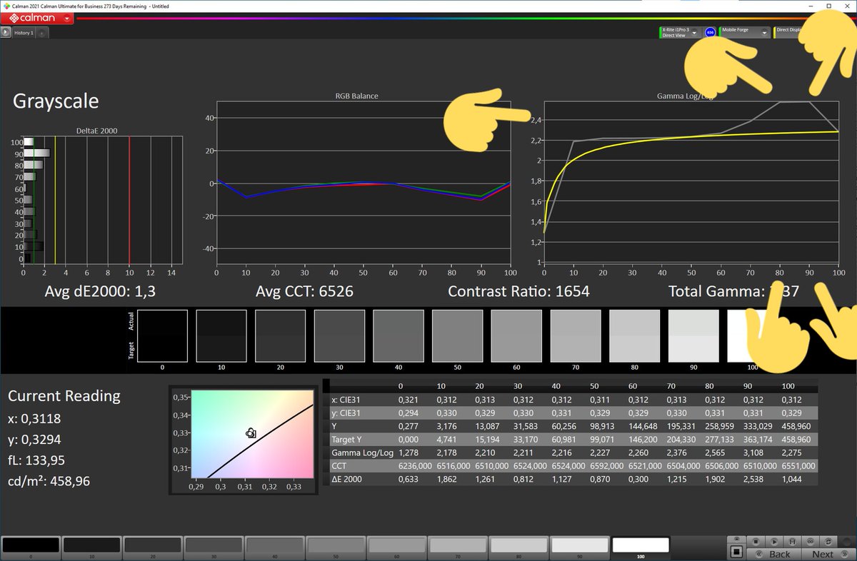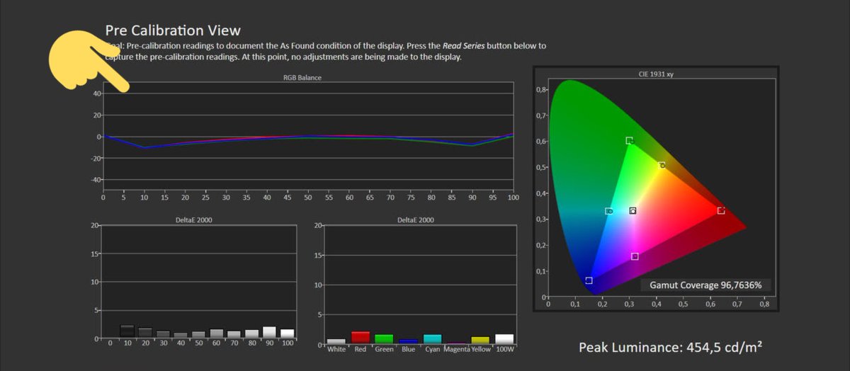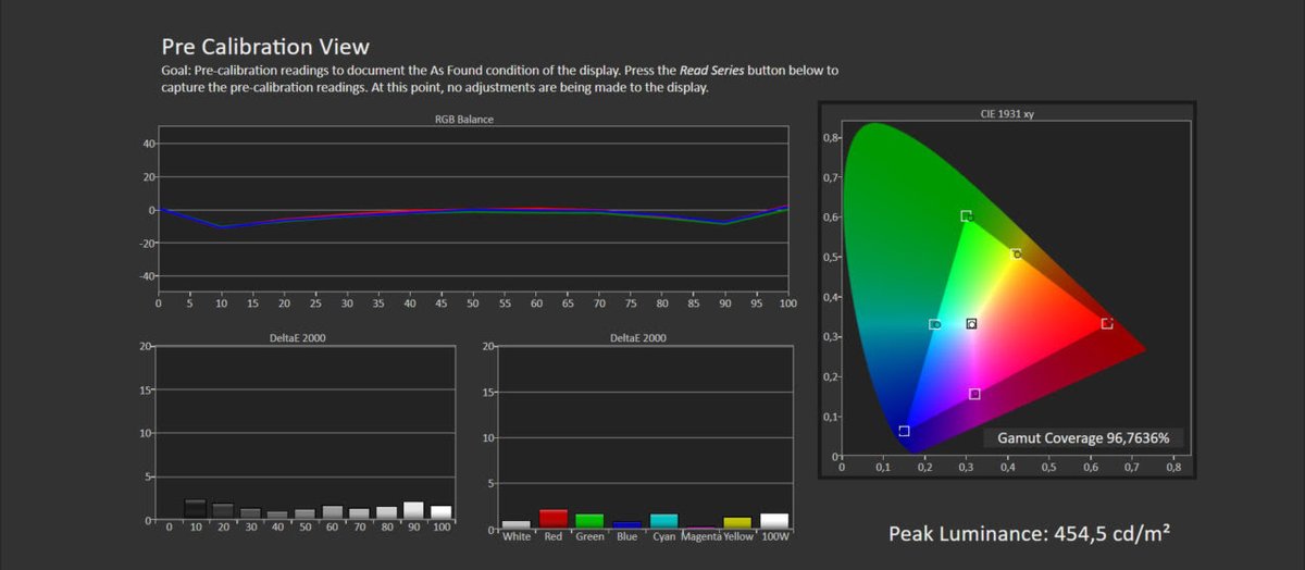 الخلاصة واللي ابي اوصله ذكرت احتمال وجود خطأ بالقياسات بالإنحناء اللي موجود في البداية بسبب استخدام مقياس طيف فقط والأقرب ان هذا الخطأ متواجد في جميع شاشات ال AMOLED حتى بقياس فينسنت بمقياس مرجعي ما اعرف مصدر الخطأ ويمكن احصل على نتيجة مختلفة بإستخدام برنامج ثاني للمعايرة