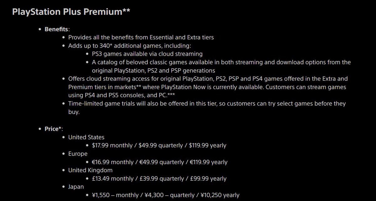الدول الي ما تدعم خدمة البث السحابي (مثل السعودية) بيكون لها اشتراك خاص بإسم "Playstation Plus Deluxe" سعرها بيكون أقل من البريميوم مع ألعاب PS1 و PS2 و PSP قابلة للتحميل مع بقية مزايا Essential و Extra