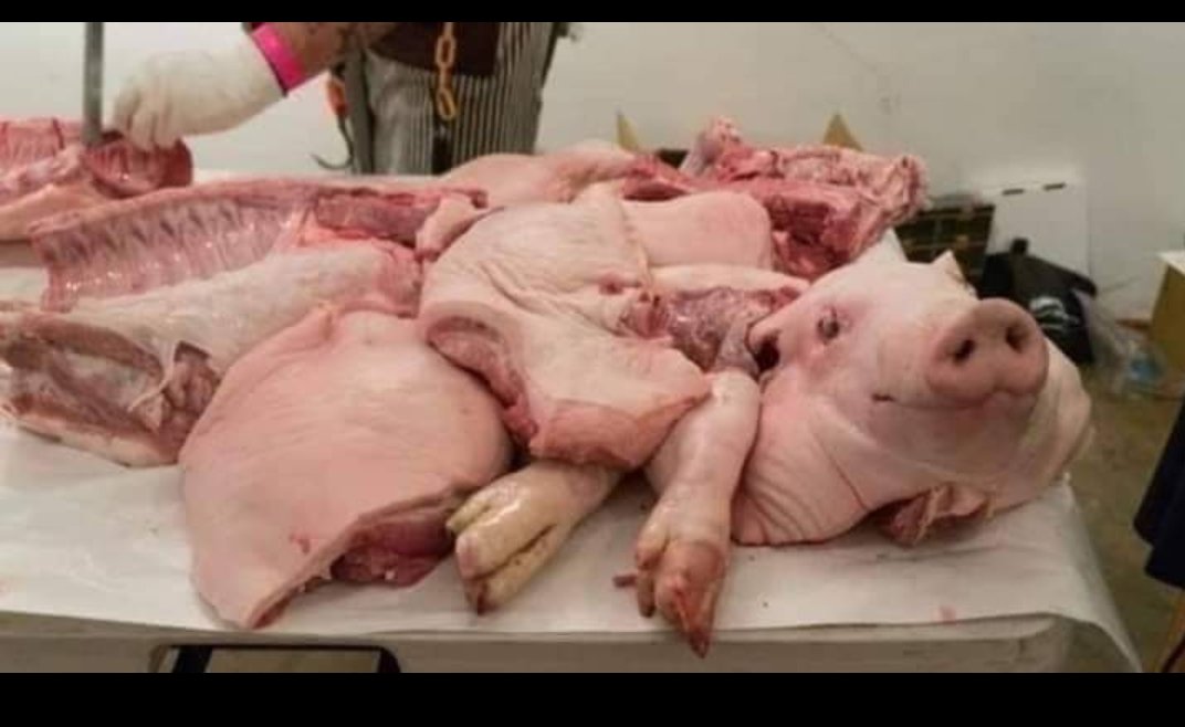 فيه دماء بتكون متجمدة في رأس الخنزير لأنه المخلوق الوحيد اللي مش بيرفع رأسه للأعلى.