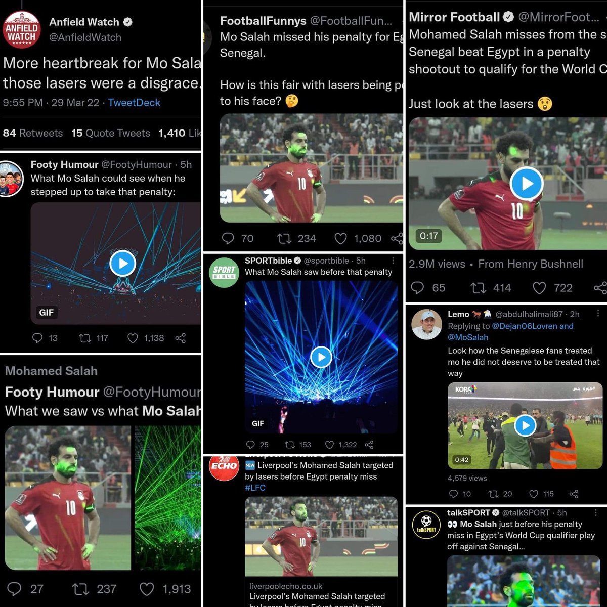 ٦- صلاح: صلاح ليفربول أحسن من صلاح المنتخب، ليفربول عنده لعيبة أحسن تشغله والأهم عنده مدرب بجد مش بتاع كشري