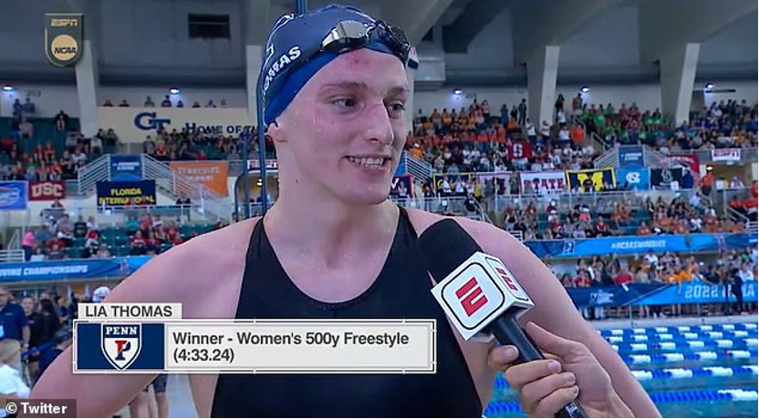 في خصم الجدل القائم حول فوز السباح الأمريكي المتحول جنسياً (ليا توماس) بسباق NCAA 500 وتحطيمه للأرقام القياسية النسوية بسهولة.