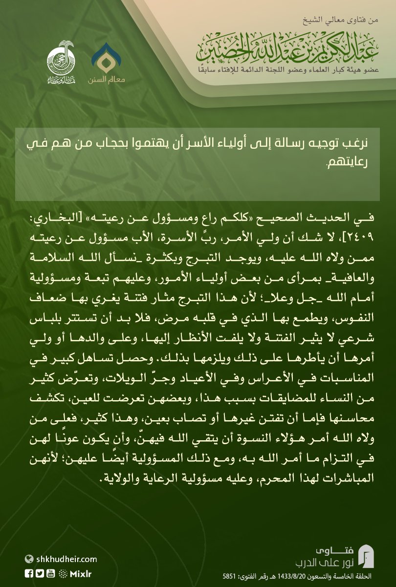 نرغب توجيه رسالة إلى أولياء الأسر أن يهتموا بحجاب من هم في رعايتهم.