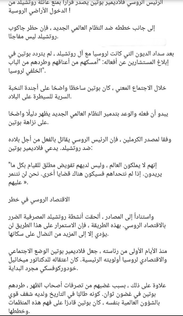 وصرح فيلاديمير بوتن بأنه لو واصل روتشيلد وسوروس الضغط على روسيا 🇷🇺