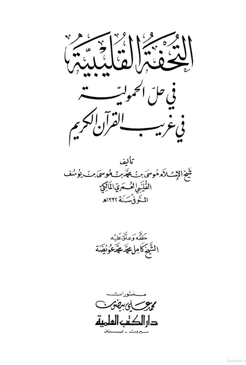 التحفة القليبية في حل الحمولية في غريب القرآن الكريم