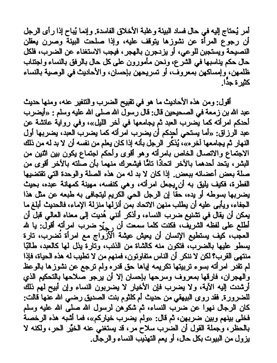 - المؤتمرين بأوامر القرآن - يكره الضرب فلم يضرب زوجة قط بل لم يضرب أمة من الصغار ولا من الكبار
