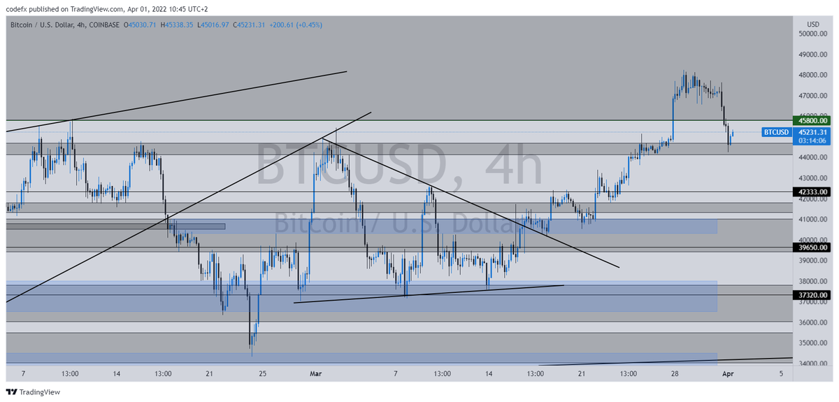 Como avisé el 16 marzo, la estructura estaba clara y la subida era inminente, así fue. Tenía como objetivo los 48k por su coincidencia en mi nivel OTE 🎯