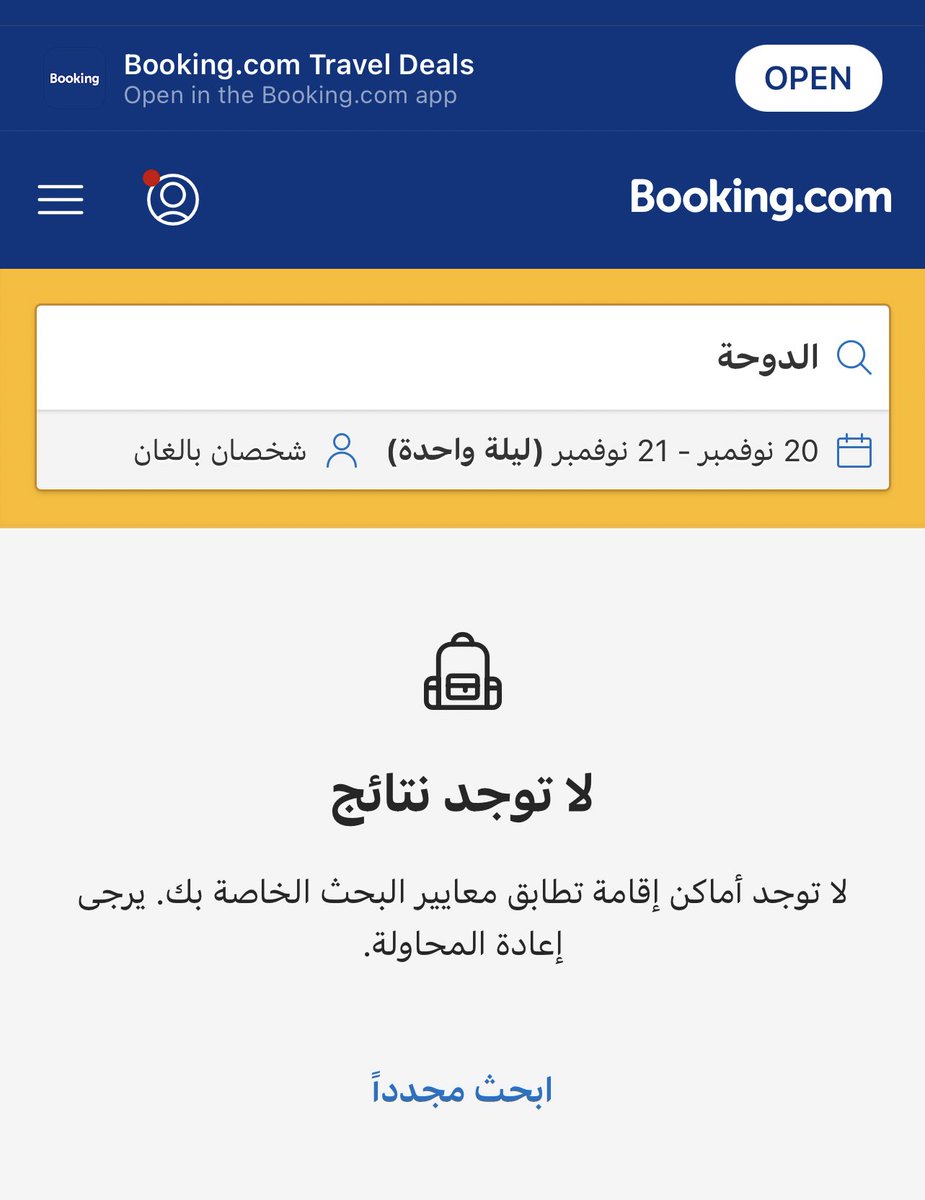 جلست ابحث عن مكان للإقامة في #الدوحة بتواريخ ماقبل واثناء وبعد افتتاح #كأس_العالم_2022 وللأسف لايوجد أي غرفة متاحة للحجز من الآن 😁💔