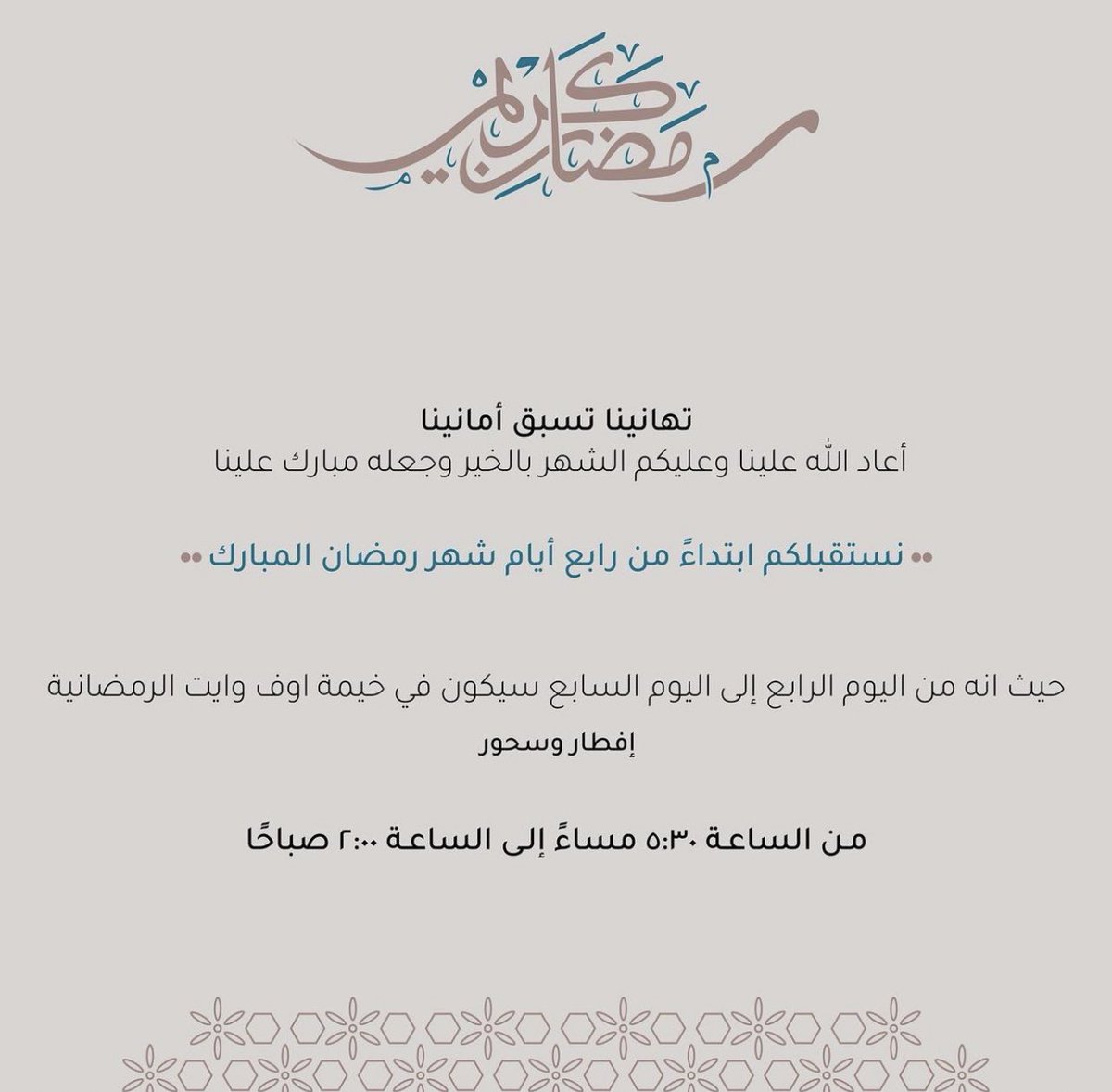اوف وايت يستقبلكم من رابع أيام شهر رمضان المبارك
