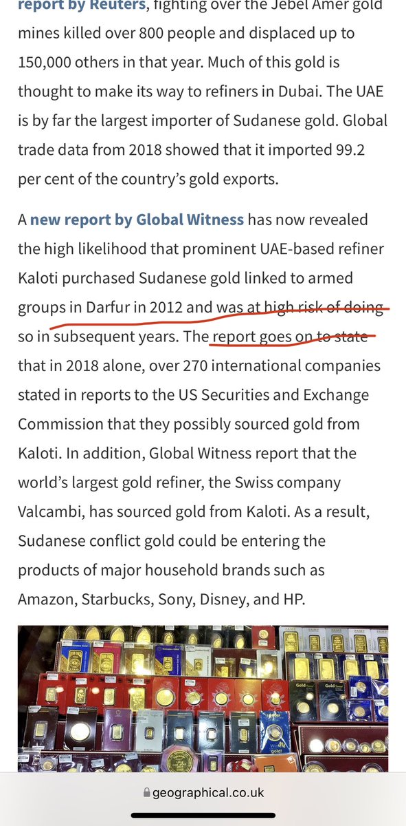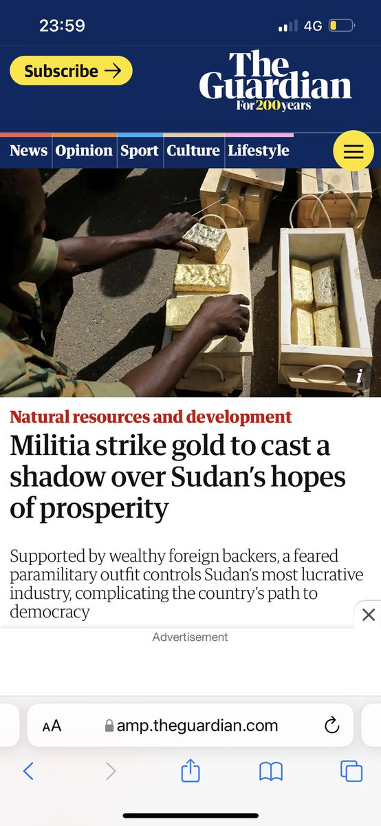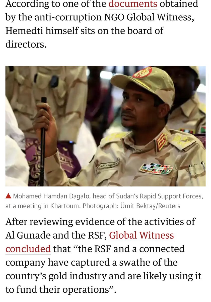 theguardian.com دا مقال لصحيفة القاريان عن دور الملشيات وتجاره الذهب في تبديد حلم الازدهار وفي المقال شرح مفصل لعمليه الشراء والبيع وتورط الدعم السريع في العمليه