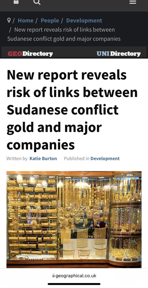 geographical.co.uk مقاله اخرى ربطت بين الحرب والتسليح والنزاعات في السودان وتجاره وتهريب الذهب
