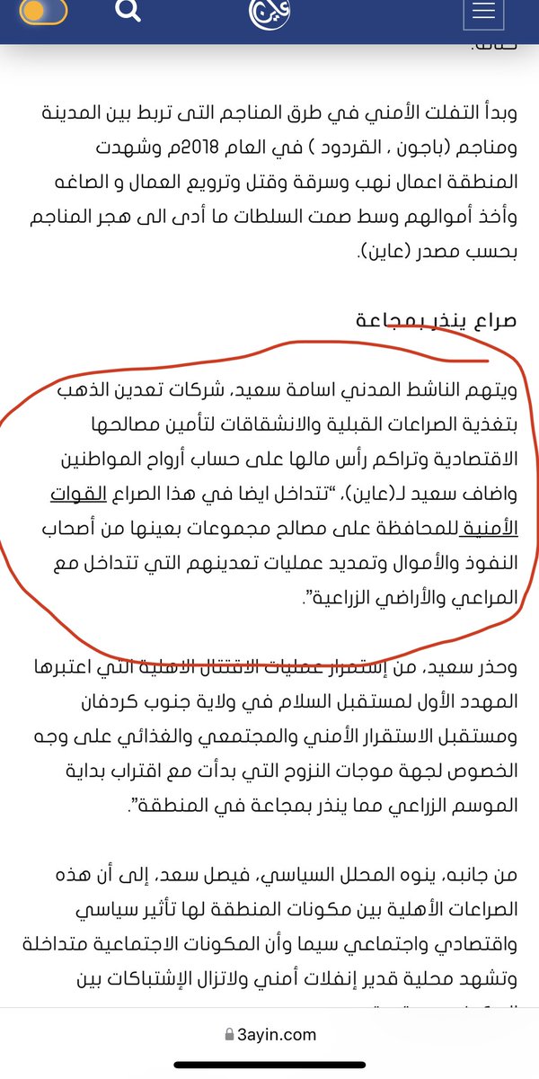 منطقه الحميض في جنوب كردفان كذلك من مناطق التعديل اللي حصل فيها اقتتال قبائلي وتسليح بسبب الذهب ؛ الحكومه تدعم جهات معينه وتتجاهل القتل #حرب_الذهب_في_السودان 3ayin.com المقال كامل