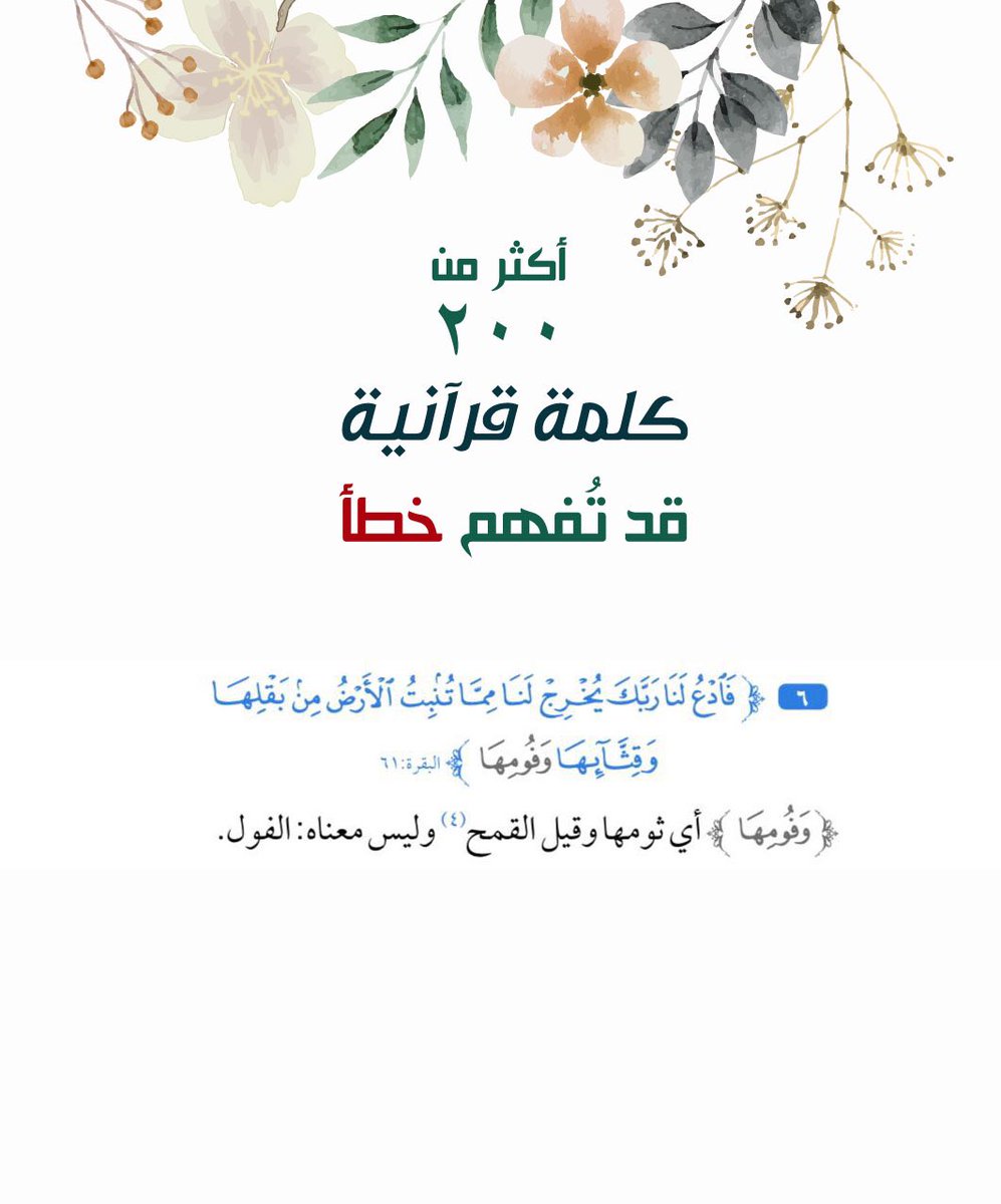 بإذن الله هذه التغريدة ستكون مختصة بـ اقتباسات لكتاب (أكثر من ٢٠٠ كلمة قرآنية قد تفهم خطأ)..