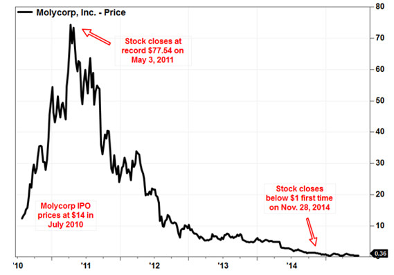 و اعادة تصدير العناصر وبكميات اكبر و ارخص فكانت هذه الضربة القاضية التي ادت الى انهيار شركة مولي كورب وتفرد الصين بهذا السوق