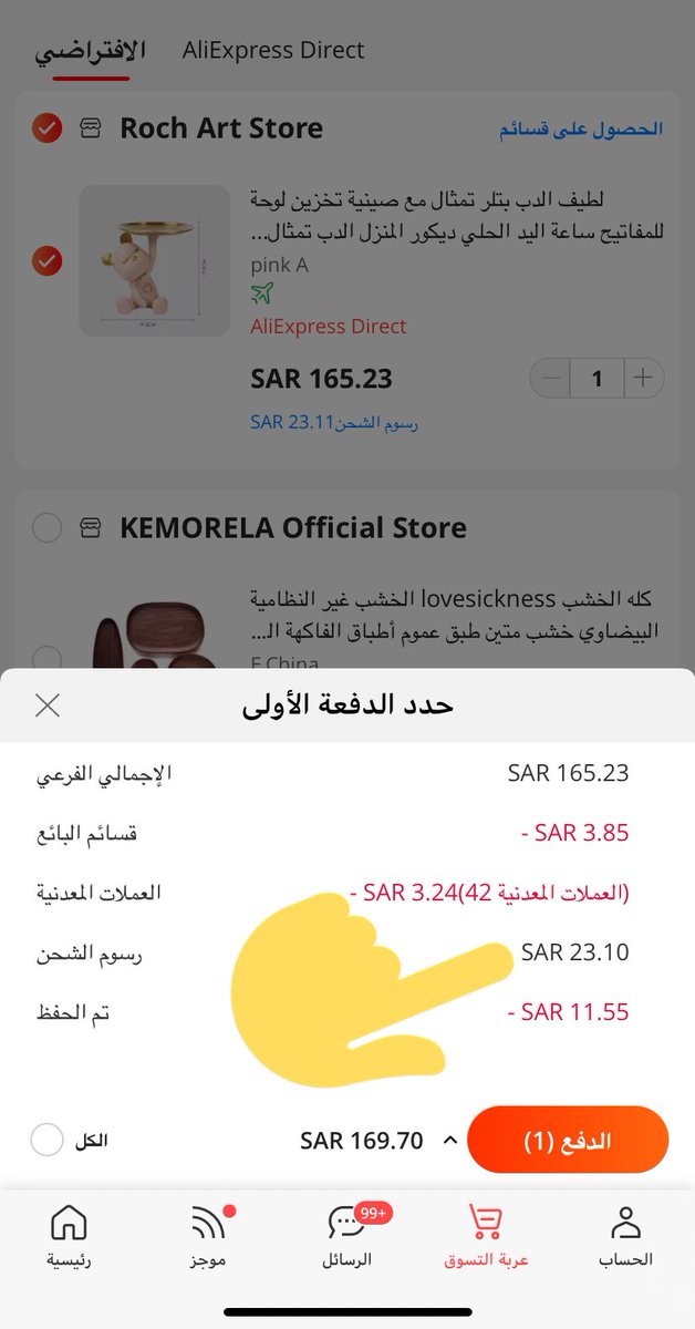 2/ اذا تبون شحن AliExpress direct يصير سرييع مرة اطلبو من كل متجر لحاله