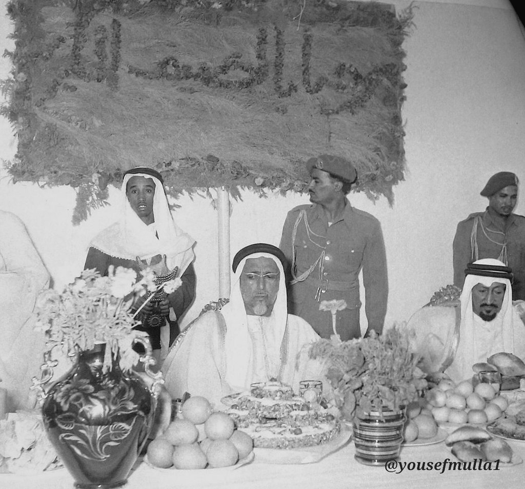 صور نادرة للملك سلمان بن عبدالعزيز (أمير منطقة الرياض آنذاك) مع ضيف المملكة العربية السعودية أمير دولة قطر الشيخ علي بن عبد الله آل ثاني رحمه الله، في الخمسينيات الميلادية.