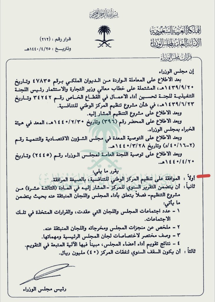 1/ يتساءل البعض عن سبب صدور "الترتيبات التنظيمية" للجهاز الحكومي أو "التنظيم" للجهاز الحكومي بقرار من مجلس الوزراء، وليس بأمر ملكي أو بمرسوم ملكي كونها أدوات أسمى قانونياً، وعلّة ذلك نظام مجلس الوزراء ذاته الذي منح للمجلس هذا الاختصاص، وهو اختصاص "إحداث وترتيب المصالح العامة"،