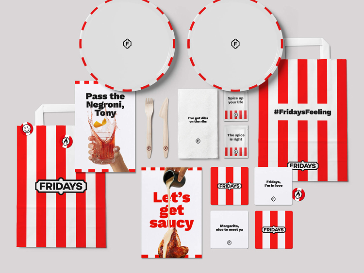 العنصر المتبقي الأكثر شهرة من العلامة التجارية للمطعم هو مخطط الألوان الأحمر والأبيض. تم الاحتفاظ بهذا ، على الرغم من أن الألوان تظهر الآن كخطوط عمودية بدلاً من القطرية التي أصبحت جزءًا من الهوية.