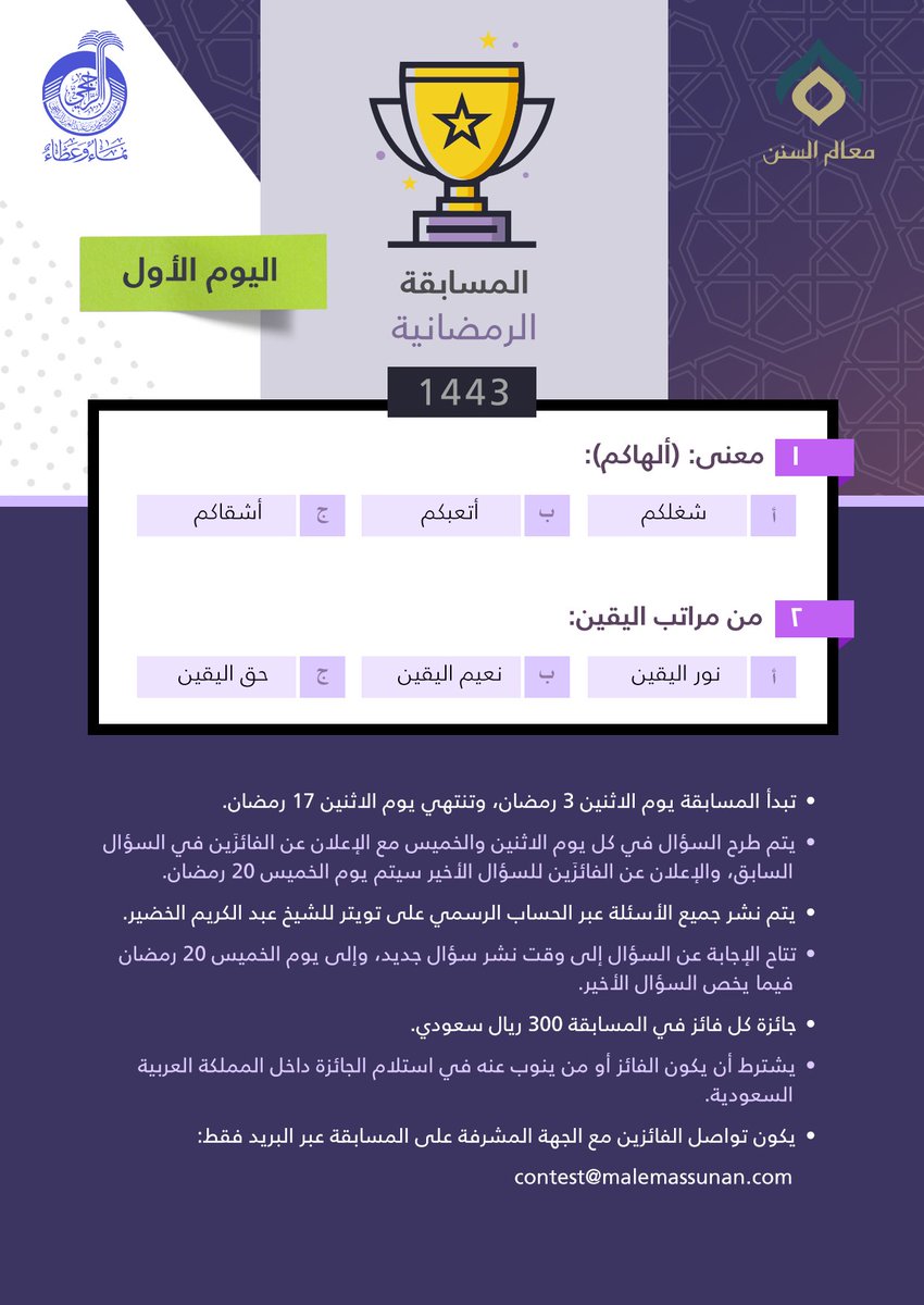 ** سيتم طرح مسابقة اليوم الثاني بعد قليل، تابعونا..