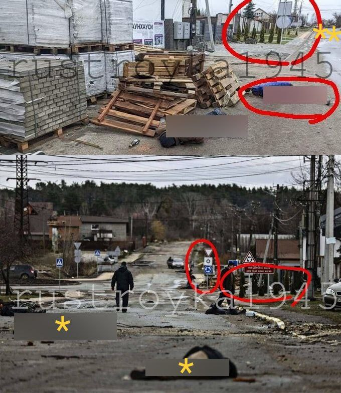 Certaines des victimes à #Bucha sont des personnes qui ont été tuées par la soi-disant défense territoriale ukrainienne. Ceci est confirmé par les Ukrainiens eux-mêmes. Le reste des victimes ont été tuées dans les bombardements menés par l’AFU après le départ des troupes russes