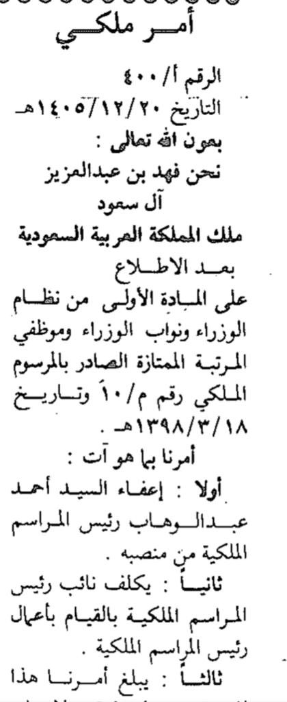 1️⃣0️⃣استمر (السيد)رئيسًا للمراسم الملكية طوال عهد #الملك_خالد ورافقه في الحضر والسفر، كما استمر خلال السنوات الأولى من عهد #الملك_فهد حتى اعفائه عام ١٩٨٥م، ومع ذلك استدعاه الملك فهد بعد الإعفاء بعدة أشهر وكرّمه، في قصة لاتخلو من وفاء قادة المملكة لرجال الدولة المخلصين..