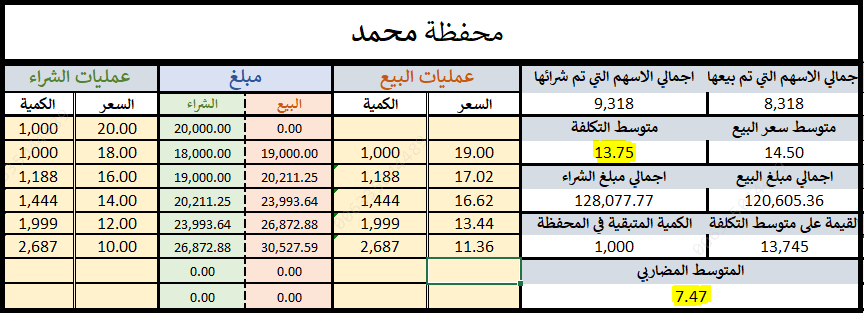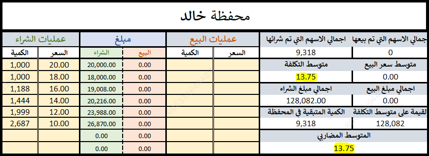 نزل ملف الاكسيل وجرب صفقات وهميه وشوف ايش يصير في المتوسط المضاربي